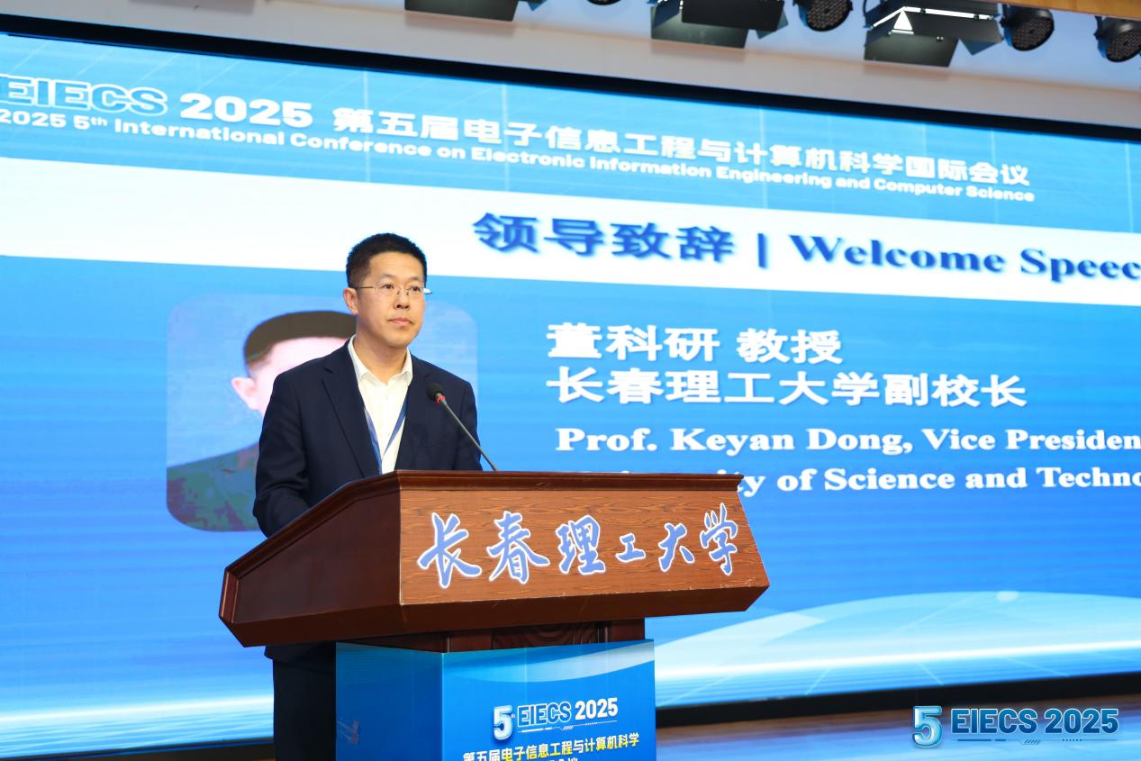 9 月 27 日上午,大会在热烈昂扬的氛围中正式拉开帷幕。长春理工大学副校长董科研教授受邀致开幕辞,首先向远道而来的各位与会嘉宾致以诚挚而热烈的欢迎。他在致辞中强调,当前新一轮科技革命与产业变革正加速演进、深度发展,在此背景下,本次会议以 “电子信息工程与计算机科学” 为核心主题,旨在搭建一个开放包容、协同创新的国际化学术交流平台,助力推动学术思想的深度碰撞与跨界融合,新质生产力的培育注入强劲的学术动能与技术支撑。